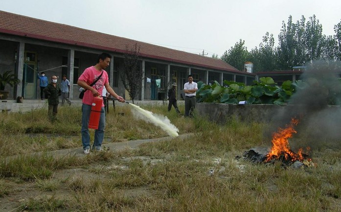 參加此次演練的有生產(chǎn)副總鄭理、技術(shù)副總苗海濱、安環(huán)部負(fù)責(zé)人葛業(yè)成、保溫廠廠長(zhǎng)楊圣勇及其他相關(guān)工作人員。安環(huán)部主要負(fù)責(zé)人在現(xiàn)場(chǎng)給大家講解了如何識(shí)別滅火器的壓力表指示、如何識(shí)別滅火器有無過期等一些消防知識(shí)。參加人員依照演練程序,布置演練現(xiàn)場(chǎng),先示范滅火,再依次操作滅火,成功進(jìn)行了消防演練。